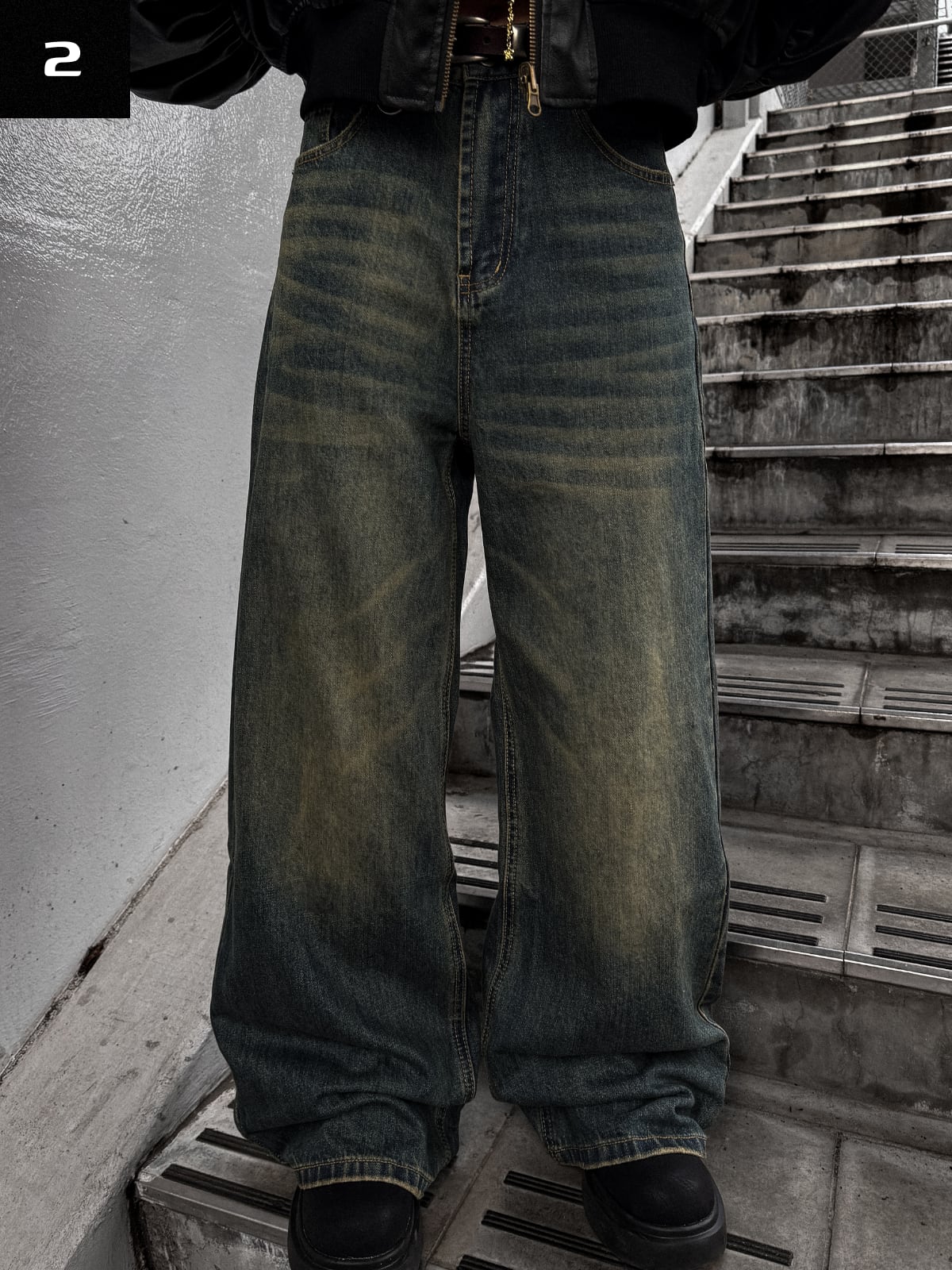 スタンダードなストレートシルエットで汎用性抜群なヴィンテージテイストデニムパンツが登場 ダボっとしたワイドシルエットでレディース、メンズ問わずお使い頂けるユニセックスアイテム ボディには程よくダメージ加工やウォッシュ加工を施してストリートな雰囲気を演出 レザージャケットやダウンジャケット、ファーコートと合わせた韓国ストリートやY2Kな着こなしにもぴったりな1本 足元にはスニーカーはもちろん、ローファーやブーツなど合わせるアイテムによってさまざまな着こなしがお楽しみ頂けます。 ユニセックスアイテムですので男女問わずご着用いただけるアイテム ※生地と染料、加工の性質上商品ごとに色差があります。 -------------------------------------------- 【モデルスペック】 ・男性モデル 身長173cm / 着用サイズ:L ・女性モデル 身長156cm / 着用サイズ:M -------------------------------------------- 【サイズ・素材詳細】 総丈 / ウエスト / もも周り M 104 / 72 / 78 L 106 / 75 / 80 素材: 綿86.5% ポリエステル6% 再生セルロース7.5% ※上記サイズ詳細はあくまでも目安なので多少の誤差が ある場合があります事をご了承ください。 -------------------------------------------- 【ご注意】 ・デニムの特性上、染料の特有のニオイがあります。また人によっては染料のニオイが多少強く感じられる場合がございます。 ※気になる場合は風通しの良いところで、しばらく日陰干しをして下さい。 ・染められているため、洗濯を繰り返すうちに自然に色落ちしていきます ・商品の色味につきましてお客様のお使いのモニター環境により実際のカラーと画像の色味が違って見える場合が御座います。予めご了承の上ご注文下さい。 ・室内や外での撮影画像は光の加減で、実際の商品より明るく見える場合が御座います。